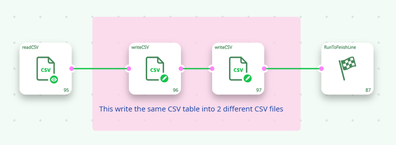 The RunToFinishLine action defines which part of the script will be executed when you click on the execute button inside the main toolbar of ETL. Let’s give more details, using another small example;