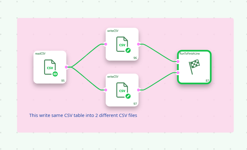 In order to run all the Actions of the above ETL pipeline, each final node must be connected to the Global Run Flag, as detailed below;